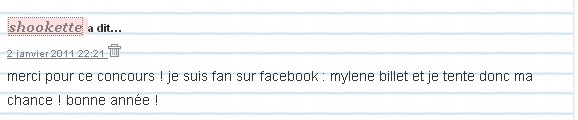 et pour terminer j'ai aimé ton statu hellocoton. Merci beaucoup pour tous ces concours !