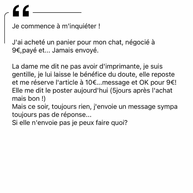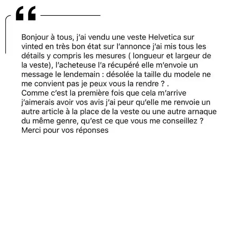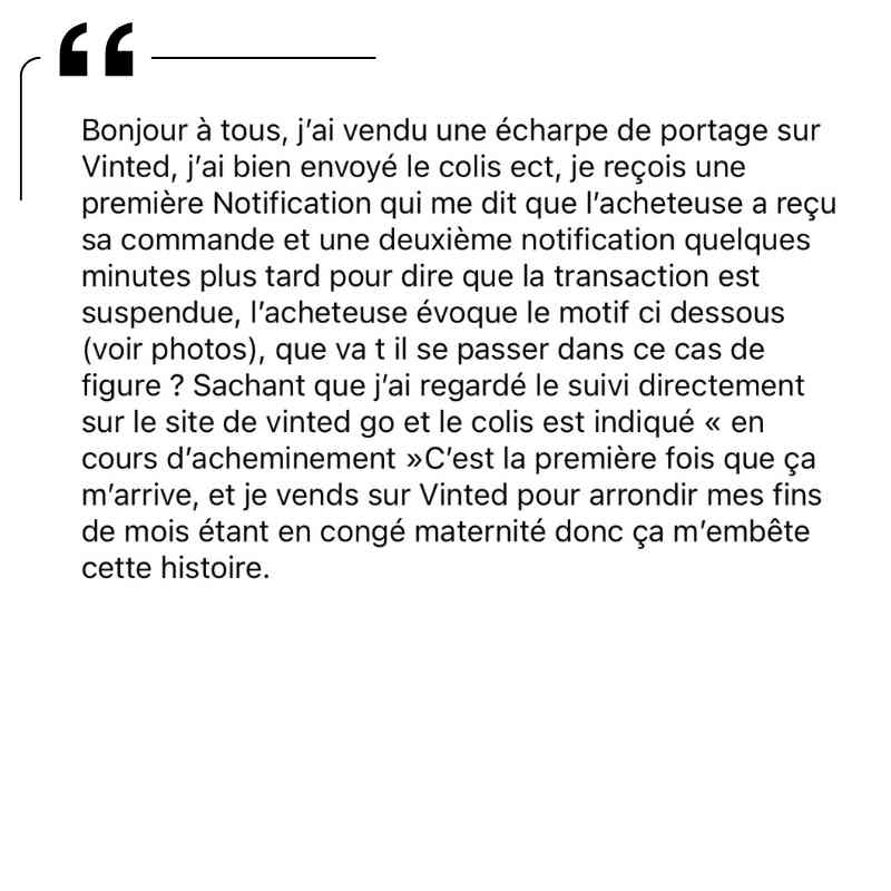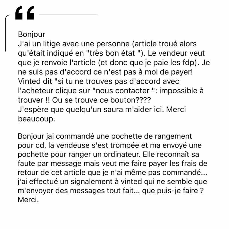 Les cas pratiques retenus ci-dessous sont des cas lus dans les groupes Facebook Vinted.
